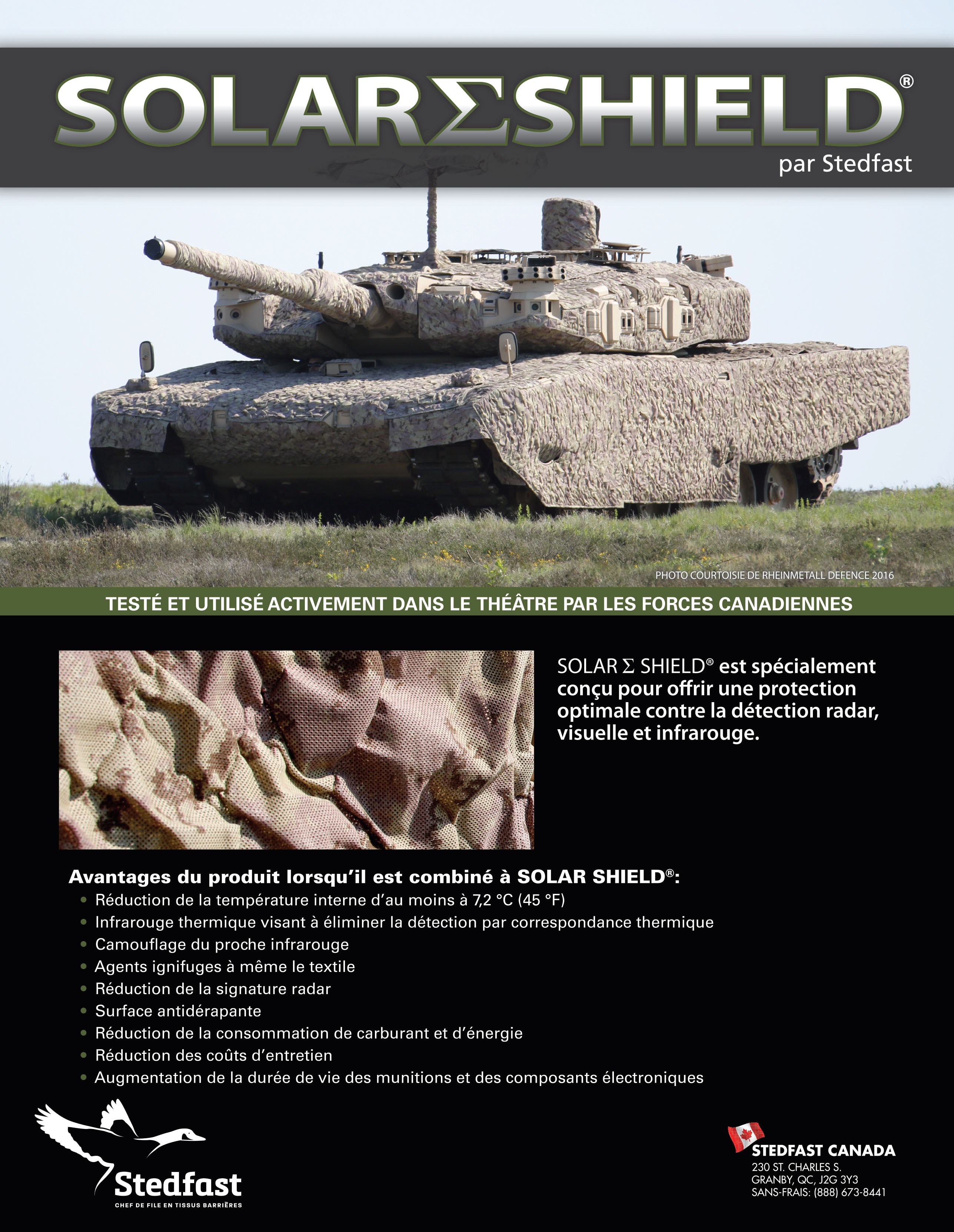 Le textile à blindage solaire Solar Shield consiste en une matrice laminée tridimensionnelle à multiples couches réduisant la chaleur et la charge thermique des structures.